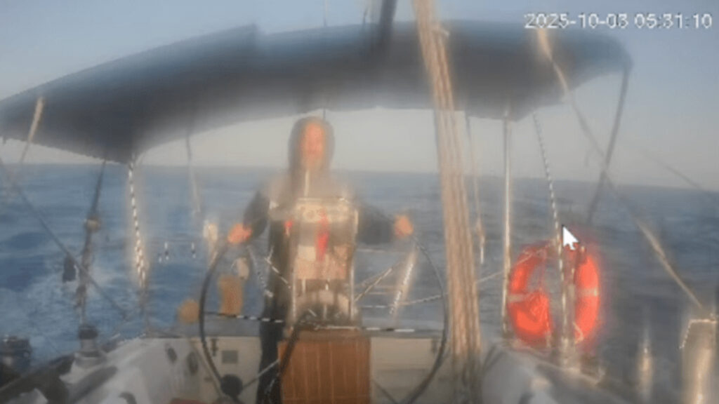 একটি লাইভ ভিডিও ফিডে দেখা গেছে, সূর্যোদয়ের সাথে সাথে ভূমধ্যসাগরে আন্তর্জাতিক জলসীমা দিয়ে এগিয়ে চলেছে নৌযানটি।