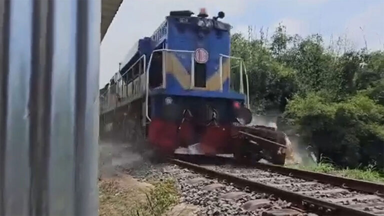 রাজবাড়ীর কালুখালীতে অবৈধ লেভেল ক্রসিংয়ে আটকে যায় একটি ইঞ্জিনচালিত নসিমন। ঢাকা থেকে খুলনাগামী সুন্দরবন এক্সপ্রেস ট্রেনের ধাক্কায় সেটি দুমড়ে-মুচড়ে গেছে।