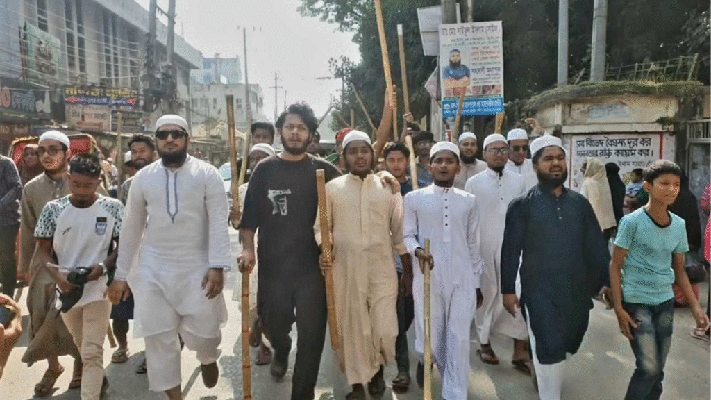 ব্রাহ্মণবাড়িয়ায় লকডাউনের বিরুদ্ধে বিভিন্ন ছাত্র সংগঠনের লাঠি মিছিল